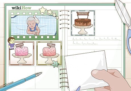 Put together a family scrapbook or journal. This will help the child feel that they belong in the family and communicate that Gotcha Day is a celebration of family and the adopted child's place in that family. You can cut up photographs from the past year and tape them to a page or two in a scrapbook for the child to flip through and remember fun times had as part of your family. You could also keep a “family journal,” and each Gotcha Day write in it a few favorite family memories from the previous year. These could include memories from vacations and travel, and have space for the child to write or draw their thoughts on the adoptive process. This method is a useful alternative to a more typical birthday-party approach to celebrating Gotcha Day. A scrapbook or family journal places the focus on family connection and intimacy.