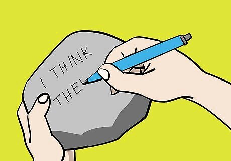 Write a quick message somewhere. This should be simple and innocent, such as writing, "I think, therefore I am." on a random rock on the sidewalk, or writing an encouraging message on a piece of paper and taping it to the ceiling somewhere. If you're writing on public things, make sure that it's not permanent or inappropriate. Remember to write nice things, not gossip and sarcastic comments.