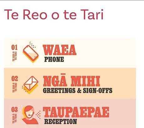 Make te reo welcome at your school, work place and in your community. Put up dual-language signage. Try saying "Mōrena", "kia ora" and "Pō mārie". Put labels on everyday items like your kāpata and the tēəpu.