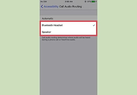 Tap on a routing preference. The default setting is "Automatic," which routes call audio to your phone's internal speaker, headphones, or to a connected Bluetooth device such as a car stereo or external speaker. Bluetooth Headset will first try to route audio from incoming phone and FaceTime calls to a connected Bluetooth device, like a headset or hearing aid. If you have this option enabled but forget to bring your device with you, calls will automatically re-route your iPhone's internal speaker. Once this option is enabled, you won't have to re-enable it when connecting to your Bluetooth device again. Speaker will automatically route audio from incoming phone calls and FaceTime calls to your iPhone's loudspeaker, or speakerphone.
