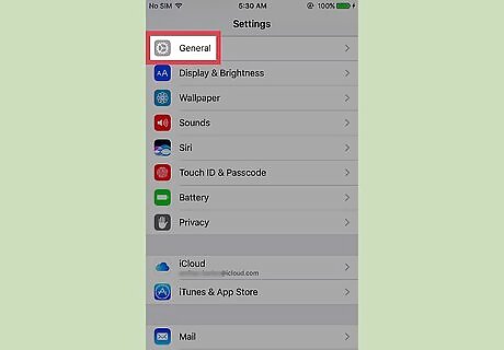 Tap General. It's the icon with a white cog under the third section of menu options.