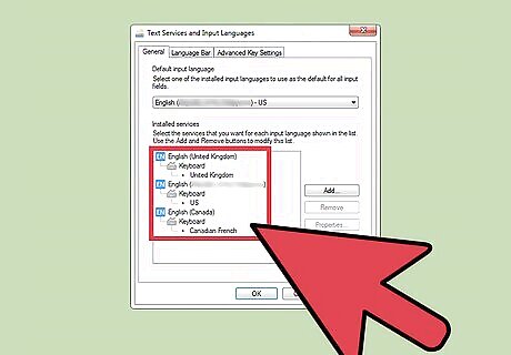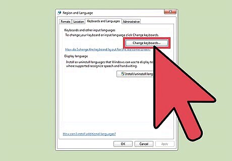 Click Change keyboards. This should open another window, listing your computer's language and the keyboards currently applied to it.