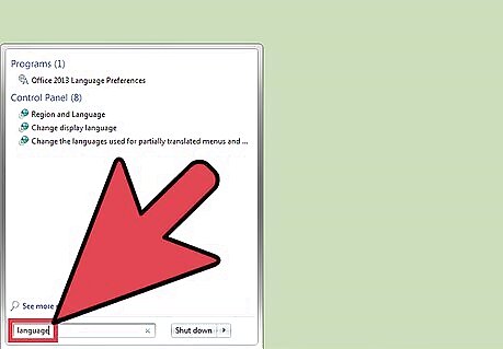 Type "language" into the search box. If you start typing the very second you open the start menu, it should automatically type into the search box. Wait for this to load and it should bring up a list of search results.