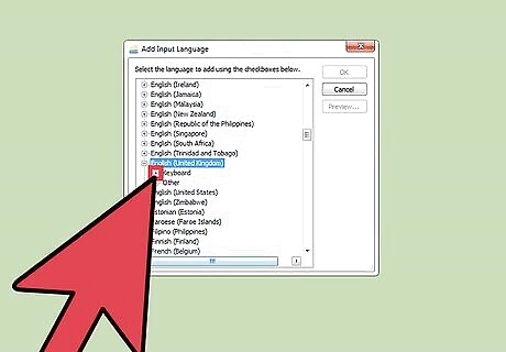 If applicable, click the + icon beside the word "Keyboard". Now you should find a selection of keyboard layouts.