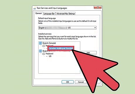 Select a keyboard to remove (e.g. "Canadian Multilingual Standard"). Select a keyboard by clicking on its name, it should be highlighted in blue.