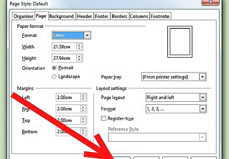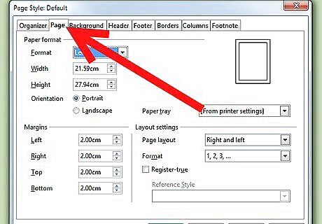 Click on Format >> Page. This will bring you to the screen that will allow you to make your changes.