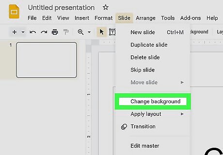 Click the Background... button. This button is on the top next to the Layout, Theme..., and Transition button.