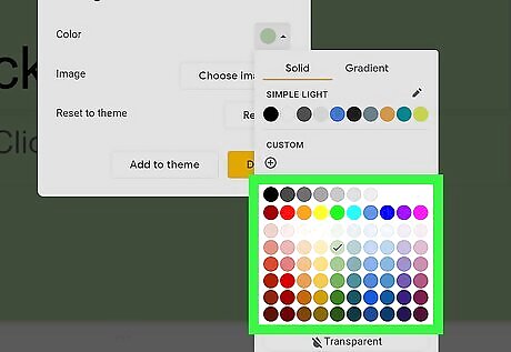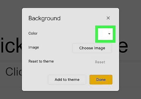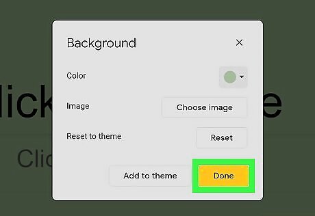 Save your changes. Click on “Done” to save the changes you’ve made. If you’re not satisfied with the background color, select “Reset to theme” to change back to the default background settings of your slideshow.