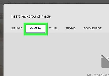 Use a photo taken by your computer’s camera. If you prefer a more recent photo, click “Take a snapshot” from the left menu panel to start taking pictures using your device’s camera and use it as background for your presentation. Note that the device you’re using should have a working camera in order for you to use this option.