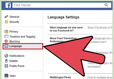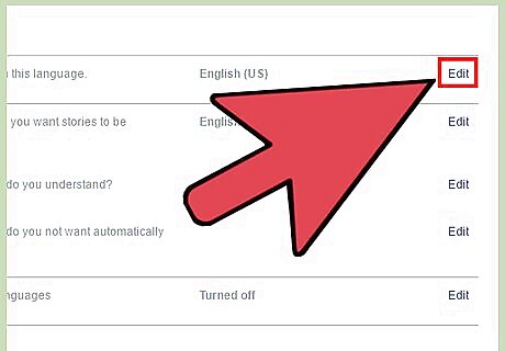 Click on "Edit." Use the link to the right of "What language do you want to use Facebook in?"