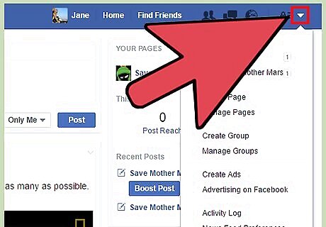 Go to Facebook.com. Log in if you aren't logged in automatically.
