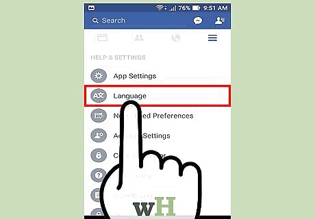 Tap Language. It is at the bottom of the menu's second section, next to a globe icon.