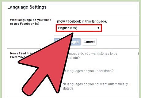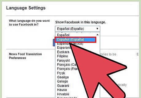 Click on the languages dropdown. It appears immediately beneath the words "Show Facebook in this language.