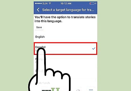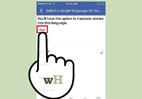 Tap Save. It appears at the top of the screen. Your language settings have now been changed for Facebook.