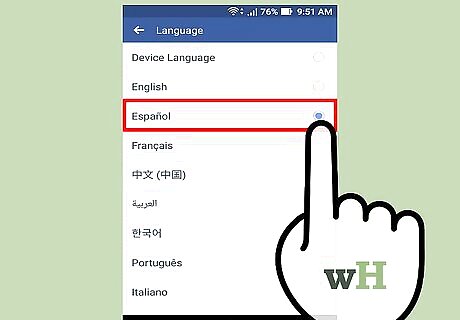 Tap your preferred language. You may need to scroll down to find it. Once selected, a blue dot will appear to the right of your preferred language. Your language settings have now been changed for Facebook.