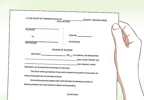 Get a certified copy of your divorce decree, if required. If your divorce was filed in another county or state, you will need to place a certified copy of your divorce decree on file in the Prothonotary’s office. You can get a certified copy of the divorce decree from the Prothonotary office in the county in which you were divorced, or from the county clerk’s office if you were divorced in another state. If your divorce was granted in the county in which you are filing for a name change, you do not need to provide a copy of your divorce decree to the Prothonotary’s office.
