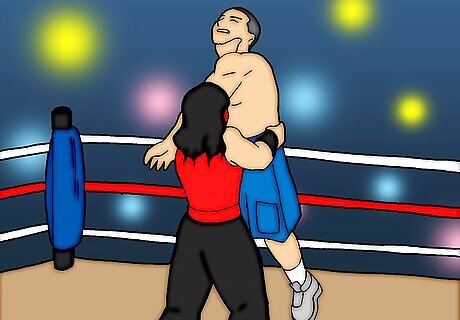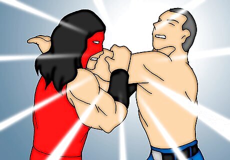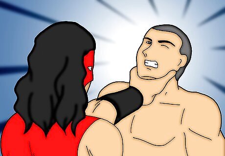 Grab your opponent by the neck using your weak arm. But don't actually choke them! Just grasp right under their jaw-bone hard enough to keep your grip.