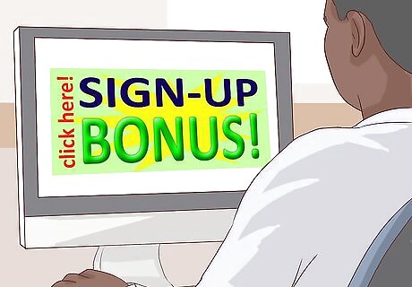 Look for cards that offer a sign-up bonus. Many travel cards will immediately give you a large number of bonus points or miles simply for signing up. Cards present this as a “reward” for applying. The initial bonus may even provide enough miles or points to cover one (or more) free flights. If you’re applying for a cobranded travel card, the airline or hotel may offer a lucrative sign-up bonus to individuals already staying at the hotel or flying on the airline. Think about joining a frequent-flier club or a hotel-rewards program prior to applying for a cobranded credit card. These type of airline- and hotel-based programs may offer special perks to their members for signing up for a cobranded credit card, or may lower the annual fees or minimum spending amount. Most cards will only apply the initial sign-up bonus after you meet the required spending minimum on the card. For example, the Capital One Venture Rewards card will reward you with 10,000 miles if you spend $1,000 in the first three months after receiving the card.