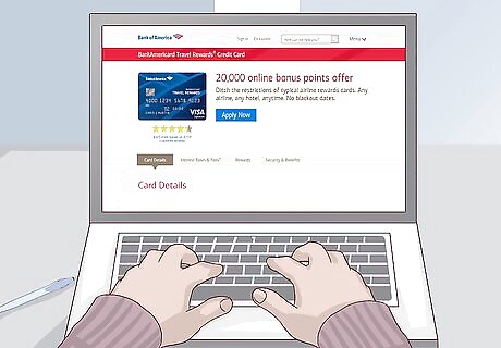Decide on a type of travel-rewards program. There are two types of travel credit cards: general and co-branded. General travel-rewards cards are offered through a credit card company and return rewards (such as miles) on every purchase. These do not limit the airlines you can fly or hotels you can stay at. Co-branded travel cards are offered through a specific airline. Co-branded cards only reward you with miles for that airline, as well as multiple airline-related perks. Many hotels also offer co-branded credit cards. These cards will not generate airline miles, but will build up points at the hotel chain that may be used for free hotel rooms or amenities.