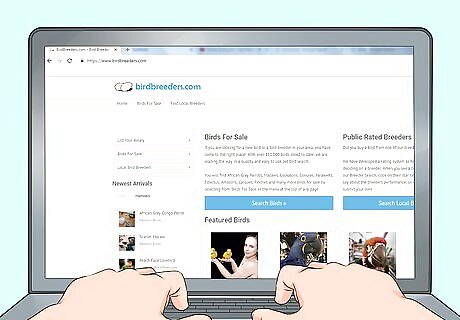 Buy a lorikeet from a breeder. If you buy a lorikeet from a breeder, you’ll have more information about the breeding stock, species, and history of the individual you’re going to bring home. The breeder may also offer you advice on training, housebreaking, and caring for your lorikeet. Ask your veterinarian or a local bird organization about reputable breeders near you. To read reviews about bird breeders near you, go to www.birdbreeders.com. Always check out the breeder's aviary to make sure the birds are kept in sanitary and spacious conditions. Take some time to tour the breeder’s facility and talk to the breeder about their birds.