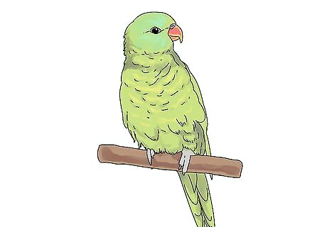 Pick a scaly-breasted lorikeet if you want a medium-sized bird. While still somewhat large at 9 inches in length (23 cm), scaly-breasted lorikeets are smaller than rainbow lorikeets. They’re mostly green in color, but their beaks are red and will have some yellow and red on their wings, chests, and neck.