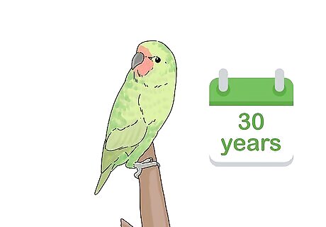 Pick a young bird if you’re ready for a 30-year commitment. If you’re looking for a bird you can train and cultivate a lifelong relationship with, you should consider a younger bird. This is important, as lories and lorikeets can live to 30 years or more. As a result, if you choose a young bird, you will necessarily be committing to many years of companionship and responsibility. While the longevity of different size, species, and subspecies of lories and lorikeets may differ, they can all live for decades.