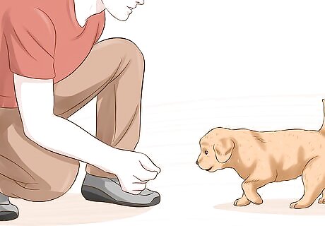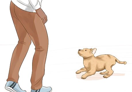 Interact with the puppy away from the littermates. After watching the puppies with their littermates, separate them. The puppy may change their behavior when not around others. You can get a better sense of what they will be like as your pet if you separate them. Play with the puppy, call it to you, hold it, and interact in ways you believe you would interact with it at your home. This can give you a sense of what the puppy will be like when you get it home. For example, quiet, gentle dogs may be more energetic when not around others, and energetic puppies may calm down when not influenced by the other puppies.