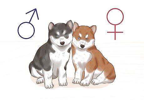 Determine if you want a male or female. This decision is important for many people. Females are generally smaller in size than males, and they tend to be less dominant and don't roam away from their home as often. By getting your puppy spayed or neutered, you won’t have to worry about pregnancy or reproductive diseases. This decision will be personal and up to you. Some people may choose the sex of their dog based on other dogs they have. For example, you may want a female dog because you have a male dog and don't want another. Others prefer female dogs who don’t mark their territory.