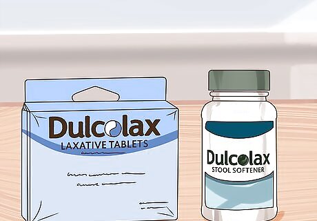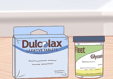 Try oral laxatives for relief. There are several different types of oral laxatives you may want to try. They relieve constipation in different ways and have different side effects. They work by triggering muscle contractions or softening your stool. You may want to take an oral laxative if you want something that works slightly slower than a rectal option or if you don’t want to insert it in your anus. The following types of oral laxatives may work best for you: Oral osmotics, such as Milk of Magnesia or Miralax. These draw water into the colon, softening the stool and making it easier to pass. These may have some side effects such as bloating, cramping, and gas, but since they're a gentler option, they're a good place to start. Oral bulk formers such as Benefiber, Citrucel and Metamucil. These absorb water to form a soft, bulky stool for normal intestinal contraction. They may have side effects such as bloating, gas, or cramping. Oral stool softeners such as Colace and Surfak. These add moisture to your stool and provide strain-free bowel movements. They may cause electrolyte imbalances, especially if used longer-term. These types of medications have fewer side effects, but they are also less effective than other types of laxatives. Oral stimulants such as Dulcolax and Ex-Lax. These trigger your intestinal muscles to contract and evacuate stool. They may have side effects such as burping, cramping, and nausea.