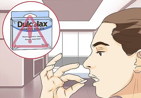 Use laxatives with caution. Many people may not need a laxative to relieve constipation. Consider making lifestyle changes such as drinking more water, eating more fiber, or trying some gentle exercise. If nothing else has worked, consider a laxative. You should be especially cautious with combination laxatives. Talk to your doctor or medical professional to see if laxatives are a safe choice for you. You should be especially careful if you haven’t used laxatives before. Watch out for stimulant laxatives because they can cause extreme abdominal pain and discomfort as they stimulate your digestive tract. Continuous daily ingestion of stimulant laxatives can cause hypokalemia, protein loss, and salt overload. These drugs should be used with extreme caution.