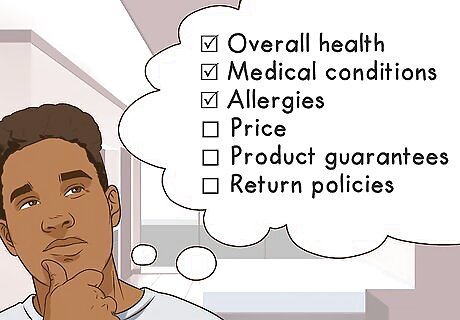 Determine the best options for you. Figure out a few types of laxatives that may work for you. Then compare the types and make a final choice. Consider factors such as: Overall health. Medical conditions. Allergies. Price. Product guarantees. Return policies.