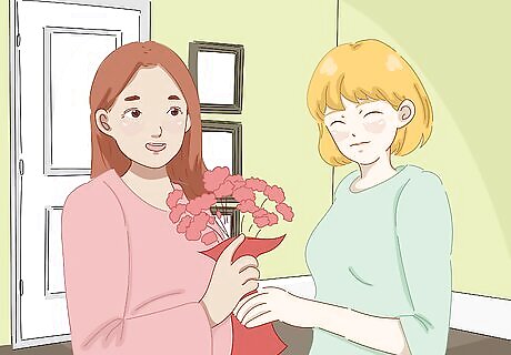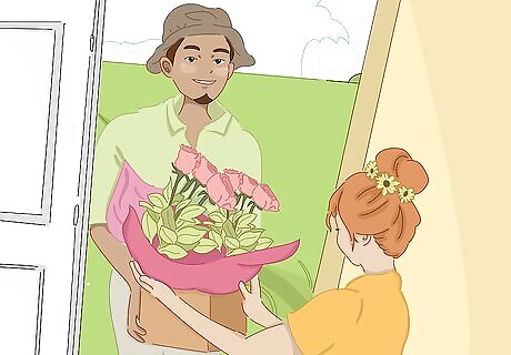 Arrange for delivery. Both online and traditional floral shops usually allow you to ship the arrangements you choose directly to your recipient. If you don’t live near the newborn, this is a great option. If you do live close by, you can choose to take the flowers to the baby yourself. If you want to bring the flowers yourself, make sure that the baby and their parents are able to accept visitors. Some new families need time to recover after birth before seeing others, especially if there were any medical complications.