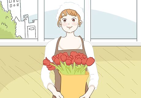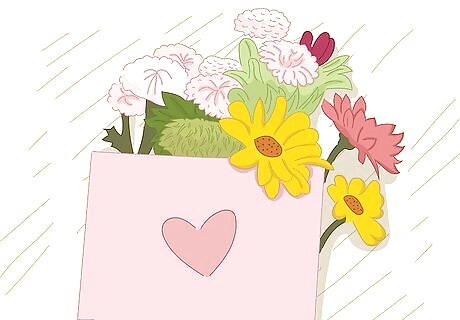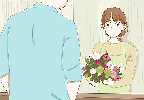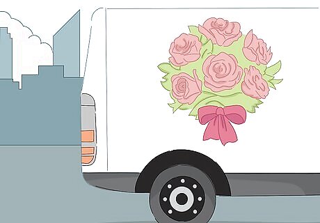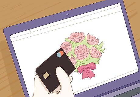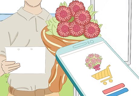 Buy flowers online or in a store. You can buy flowers in a traditional floral shop or online. Most well-populated areas have florists, and there are a variety of online stores you can browse. Buying flowers online can be more convenient, but you will not be able to ask for the florist’s input as easily, so decide how much advice you’ll think you’ll need before choosing a method! Buying and shipping floral arrangements can be somewhat expensive. If you are on a budget, you can buy relatively inexpensive flowers in many grocery stores.