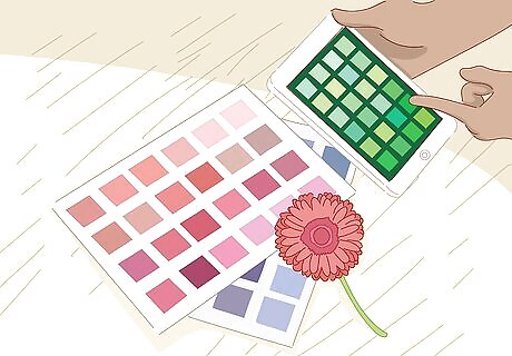 Consult a florist for recommendations. If you have an idea of what color scheme you’d like but aren’t sure which flowers to choose, you can speak with a florist to get recommendations. Florists are experts in a wide variety of flowers and know how to fit them together to make beautiful bouquets. If you walk into a floral shop near you, the staff should be more than happy to help you! You can find florists in your area by searching for them online or asking friends for recommendations. You may only want to consult a florist if you are considering buying from them directly, as they may expect you to make a purchase in return for their advice.