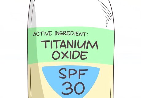 Select a titanium oxide formula for sensitive skin. Titanium oxide is a mineral that sits on the surface of your skin. This means it’s less likely to irritate your child’s sensitive skin. Check the label to make sure that titanium oxide is the active sunscreen ingredient in the product you choose. The active ingredients on the label tell you what’s protecting your child from the sun’s rays. If you see anything other than “titanium dioxide” listed there, pick a different sunscreen.