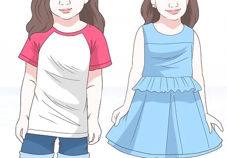 Use clothing for added protection while your kids are outdoors. It’s best to dress your children in a shirt and shorts even when they’re enjoying the pool or the beach. However, this isn’t always practical! Whenever possible, use lightweight clothing to cover as much of your children’s skin as possible while still keeping them comfortable. For instance, your child might wear a t-shirt and shorts on a very hot day. However, if it’s just warm, you might dress them in a 3/4- length sleeve shirt and long pants.Variation: If you have a baby younger than 6-months-old, dress them in lightweight clothing that covers most of their skin. Additionally, keep them in the shade at all times so their skin is protected.