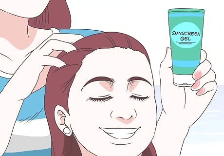 Apply a gel to easily protect your children’s scalp, if you desire. This type of sunscreen is also optional. However, a gel is easier to apply to your child’s scalp than a cream formula, so you might decide to use it to fully protect your child. Look for gel sunscreen next to the lotions at your local drugstore or online. The packaging will look similar to lotions, so read the label to make sure the product you choose is a gel. You can also use a hat to protect your child’s scalp.