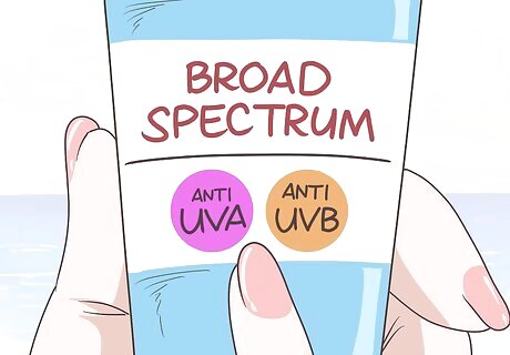 Check that it’s “broad spectrum” to protect against UVA and UVB rays. Some sunscreens only protect against some of the sun’s rays, so you need to read the label to make sure it says “broad spectrum.” This means that it will protect against all harmful UV rays. Look at both the front and back labels to make sure your sunscreen provides protection. UVA and UVB rays both cause aging and may cause cancer. However, UVA rays are more likely to cause premature aging at a deep cellular level, while UVB rays are responsible for burning.