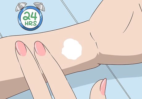 Do a spot test to make sure it won't irritate your child’s skin. Sunscreen can cause skin irritation, so it’s important to test it out first. Apply a dab of the sunscreen in a small area on your child’s skin, like their inner wrist. Then, monitor their skin for several minutes up to 24 hours to make sure there’s no reaction. If your child’s skin becomes red, irritated, or itchy, don’t use that sunscreen on them. It’s best to do this 24-48 hours before you plan on using the sunscreen to protect your child.