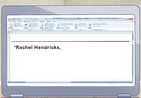 Begin with the name of the author for the footnote. Use the author's first and last name, followed by a comma. Because this is a footnote, you don't need to alphabetize by the author's last name, so there's no need to reverse the order like you would do in a bibliographical note. For instance, your citation might look like this to begin with: Rachel Hendricks, If you don't know the author's name, begin with the title of the webpage instead.