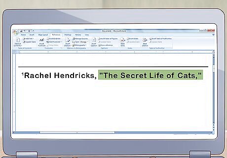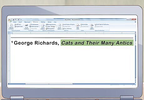 Add the name of the book next in italics. Use headline capitalization for the title, which means you capitalize all the important words. Don't capitalize conjunctions, articles, or prepositions unless they are at the beginning or end of the title. Do not put a comma after the title. For instance, your citation might look this way: George Richards, Cats and Their Many Antics
