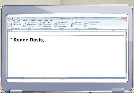 Put the author or creator's name first. The name will always be the first part of the citation if you can find it. It could also be the performer in some cases, such as with a podcast or video. Write the first name then the last name, followed by a comma. For instance, your citation will start this way: Renee Davis,
