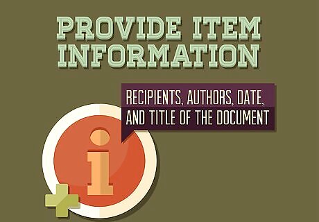 Understand archival citations. In many disciplines and types of work, you may need to draw upon archives to compose your work. This can help you and your readers quickly and easily access the material if you want to revisit it or they want to check your work. Take very detailed notes when you research so that you can include the most comprehensive citation information possible.