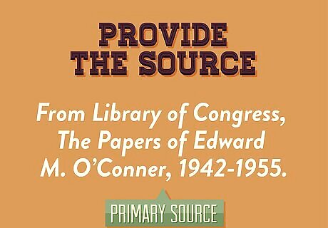 Provide the source. You may need to indicate where you found your published primary source if it did not come from the general library stacks. This information can allow you and your reader to more readily access the material either at the source or order it. You should always know the source of your material. This is absolutely vital to proving you’ve done the work. For example: O’Connor, Edward M. The Final Report of the United States Displaced Persons Commission. Manuscript. Washington, DC: Government Printing Office, 1952. From Library of Congress, The Papers of Edward M. O’Conner, 1942-1955.