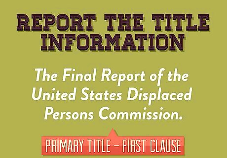 Report the title information. The second entry of your published material citation is data about the title. This gives your reader further information about how to best locate the source. Italicize the title information. Keep the title information within manageable limits. If the title is three lines long, use the primary title and first clause. For example: The Final Report of the United States Displaced Persons Commission instead of Memo to America: The DP Story: The Final Report of the United States Displaced Persons Commission. For example: O’Connor, Edward M. The Final Report of the United States Displaced Persons Commission.
