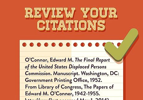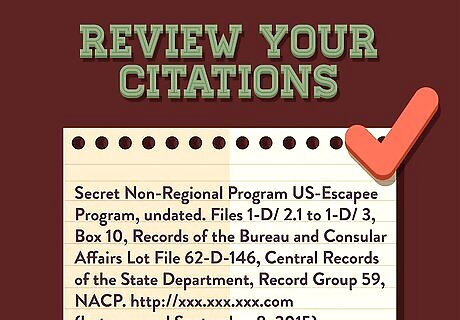 Review your citations. Before you publish or submit your work, review your citations. Because of the amount of information required in citations, it is easy to conflate items or miss a vital element. This can protects you from allegations of not doing the work or misrepresenting your sources.