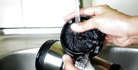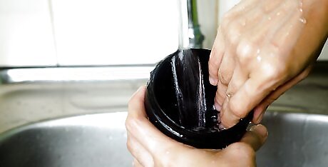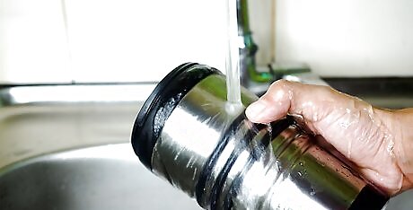 Rinse all the mug, lid, and rubber seal with warm water. Once you’ve scrubbed all the mug parts with a brush, you can drain the sink or dump the soapy water from the bowl. Then, turn the sink water on warm and hold each of the parts under the running water. If your travel mug lid has a drink opening, open and close the top to make sure the you wash off all the soap.
