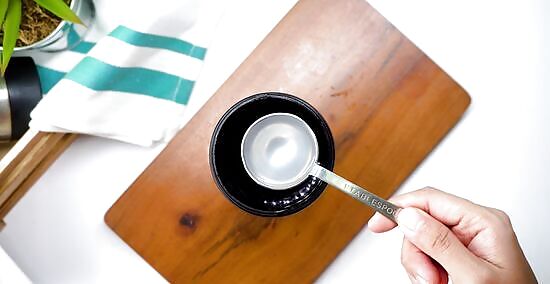 Pour baking soda and distilled white vinegar into the mug. Remove the lid on your travel mug. Pour 1 teaspoon (5 grams) of baking soda into the mug first, then add ⁄2 cup (120 mL) of distilled white vinegar. Once you add the vinegar, the mixture will bubble up quite a bit. Wait for the bubbles to settle down for a few seconds before moving on to the next step.