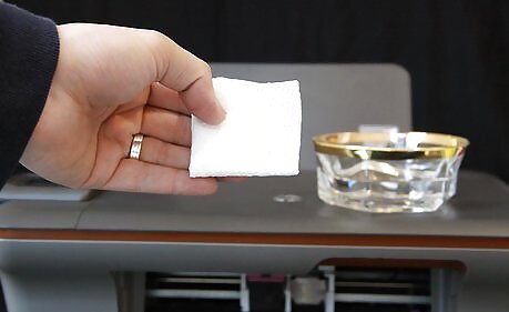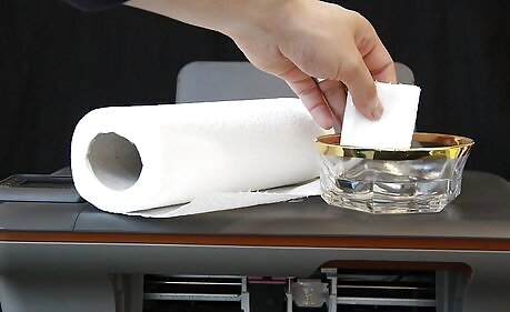 Take a lint-free cloth or paper towel and lightly dampen with warm, distilled water.