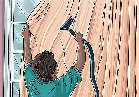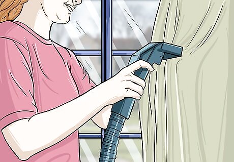 Give your drapes a gentle shake each night. When you draw the drapes at nightfall, give them a gentle shake. This will remove any dirt and dust from the drapes. Shaking the drapes a little each night makes cleaning easier, as it removes unwanted dirt on a daily basis.